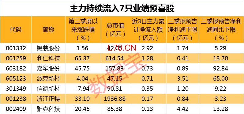元股证券:yy6699.vip资金面上,7只业绩预喜股在近3个交易日获得主力持续净流入,锡装股份、利仁科技的主力累计净流入额居前,分别净流入2.92亿元和1.28亿元。