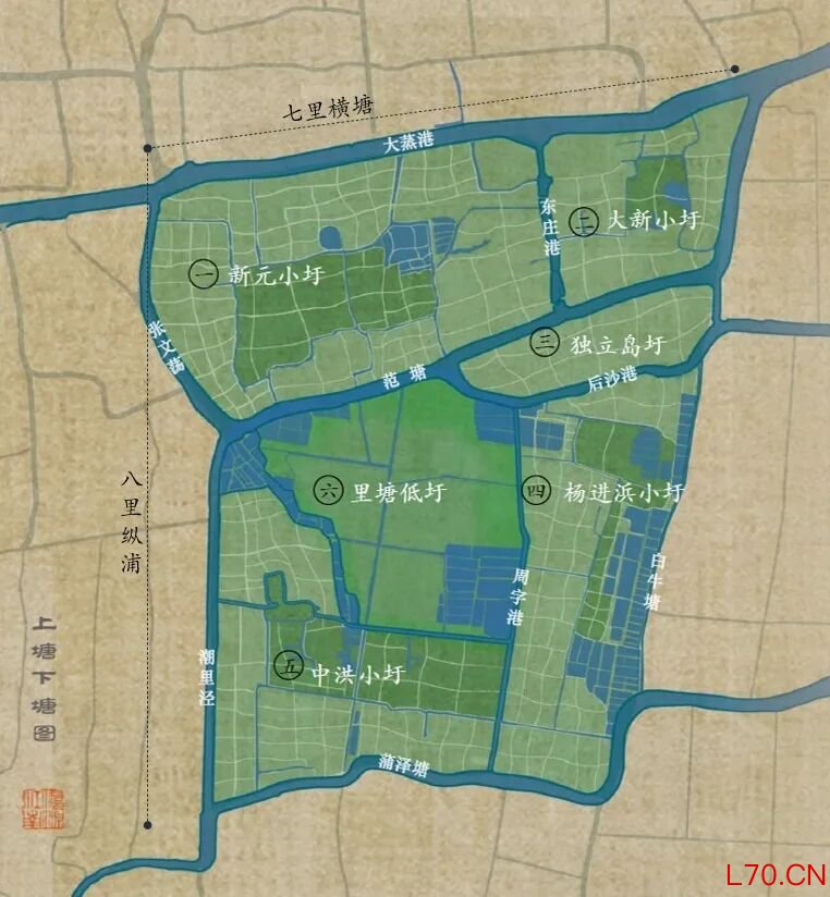 上海不是要走回头路去新建圩田,而是修复现有的留存肌理。以新元村的塘浦圩田为例,其格局以横竖交错的棋盘式大水网为骨架,用大堤围出大片方田,是先民一点点开凿而成,旱能灌、涝能排,村民沿河而居,方便耕作。